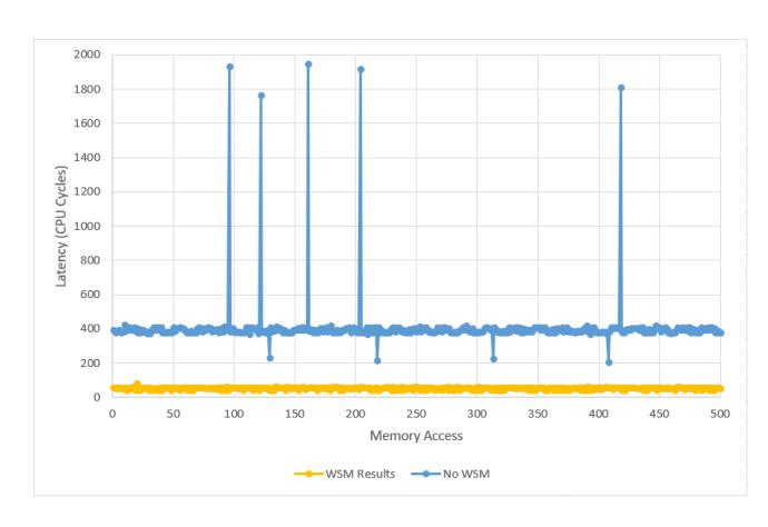 Secure World. As shown, if there is no WSM then Secure World generates a secure memory access and the cache entries created and locked are tagged as secure. If the Normal World attempts to access that memory, it gets a miss in the cache and has to load that same address but with a non-secure tag which it would be unable to lock in the cache. However, with WSM, the Secure World can create and lock cache entries tagged as non-secure. Then, when the Normal World attempts to access that memory, it will get a hit in the cache and can use the locked entires. Therefore, it is possible to restrict cache locking capabilities to the Secure World for security measures while still allowing legitimate Normal World programs to request locked non-secure cache entries from Secure World.