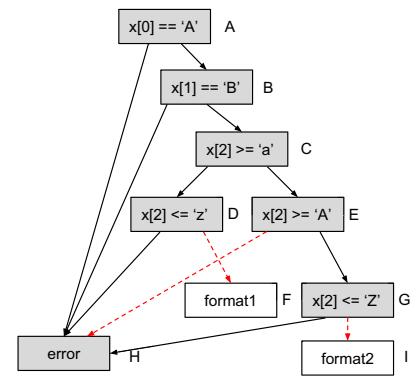 State-of-art mutational fuzzers like AFL (American Fuzzy Lop) [8] and honggfuzz [9] — called coverage guided fuzzers — use coverage as feedback from the target program to guide the mutational algorithm to generate inputs. Specifically, they keep track of a set of interesting inputs that triggered new code paths and focus on mutating the interesting inputs while generating new inputs. However, generation of inputs to pass through complex sanity checks remains a well-known challenge for mutational fuzzers because they are ignorant of the expected input format. When mutational fuzzers fail to generate inputs to bypass the sanity checks, they become "stuck" and continue to generate random inputs without covering new code paths.