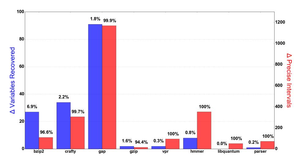In the literature, there are many examples of such static analyses, including variable bound checking (e.g., to detect buffer overflows) [37,38], detection of logic bugs [10] (e.g., division-by-zero) and various pointer analyses techniques [16,45]. Balakrishnan et al. first proposed a range analysis [1] targeting x86 binaries that can also keep track of the stride. However, strided-intervals require the signedness of the variable and do not take care of the value overflows and underflows. To handle this problem, Navas et al. proposed Wrapped Intervals [27] that is both signedness-agnostic and can take care of the overflows and underflows. However, Wrapped Intervals do not consider the stride and as we show in Section 6 this resolves to less precise results.