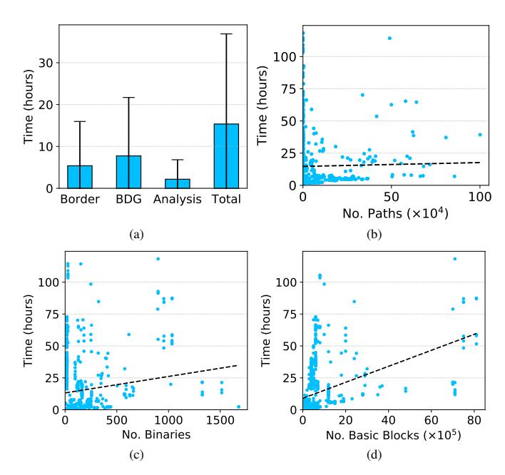 As explained in Section V, KARONTE detects if a border binary shares user-provided data by: (i) considering the set of memory comparisons retrieved by the Border Binaries Discovery algorithm, (ii) using our taint engine to taint the involved memory locations, and, (iii) performing a taint analysis on the border binary to detect whether the binary shares some tainted data. This procedure might involve enumerating all the possible program paths in the border binary, and, therefore, it might lead to the path explosion problem. Therefore, to keep the analysis tractable, we run our taint engine up a certain time limit (set to 10 minutes in our experiments). However, as some paths might be left unexplored, our prototype might miss some valid data flows between binaries, and our BDG might not contain some valid edges. Therefore, in order to increase the path coverage within a prefixed time limit, we apply the taint to each function of a border binary that refers to a networkencoding string. This solution might involve more false positive edges within a BDG (thus affecting its soundness), but it decreases the likelihood of false negative edges. This heuristic gave us noticeable improvements in practice, as the program points where data is read from sockets (e.g., recv) might be distant (in terms of the number of instructions in an execution trace) to those where such data is shared (e.g., setenv). However, as network-encoding strings might be used for other purposes within a binary (e.g., as data keys), we are able to alleviate this problem by considering as a source of taint every function that refers to network-encoding strings.