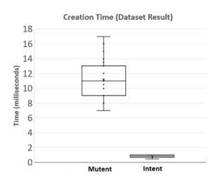 Since $\mu$ Tent object requires an additional dynamic owner creation along with a complex algorithm for encryption and key distribution, it becomes necessary for us to calculate the time taken to create a $\mu$ Tent so that we can calculate the overall impact $\mu$ Tent can impose on an application. Hence in this section we discuss the average creation time and its impact ratio based on our current $\mu$ Tent library implementation. We tested $\mu$ Tent by modifying three open source projects taken from F-Droid, and modified the Intent with $\mu$ Tent library (shown in Table 4). On an average $\mu$ Tent took $\sim$ 11.5