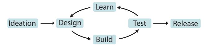 A standard biotechnology risk chain can be seen in Figure 5. In this threat model, "ideation" involves actively planning for a biological attack; "design" involves retrieving blueprints for a hazardous agent, such as determining the DNA sequence; "build" consists of the protocols, reagents, and equipment necessary to create the threat; and "test" consists of measuring characteristics or properties of the pathogen of interest. By "learning" from these results and