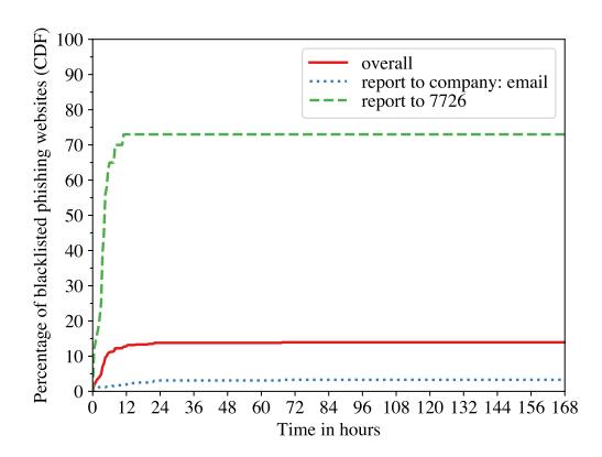 Figure 7: The blocklisting time of phishing websites in Study III.